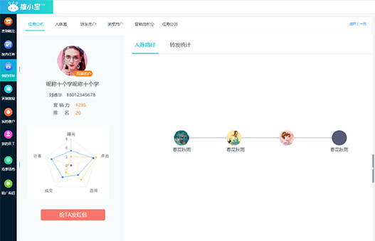 人脈關(guān)系:獲得哪一個(gè)層級(jí)的人最多,何時(shí)是傳播高峰;誰(shuí)傳播
